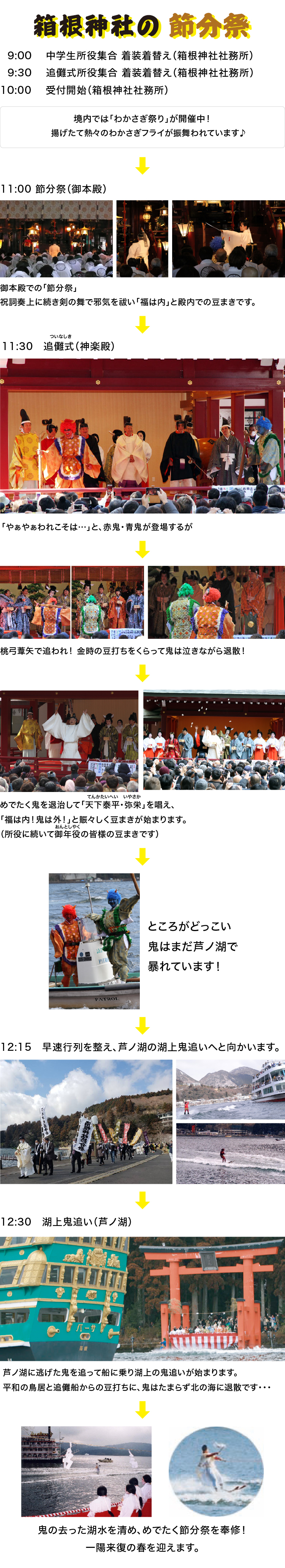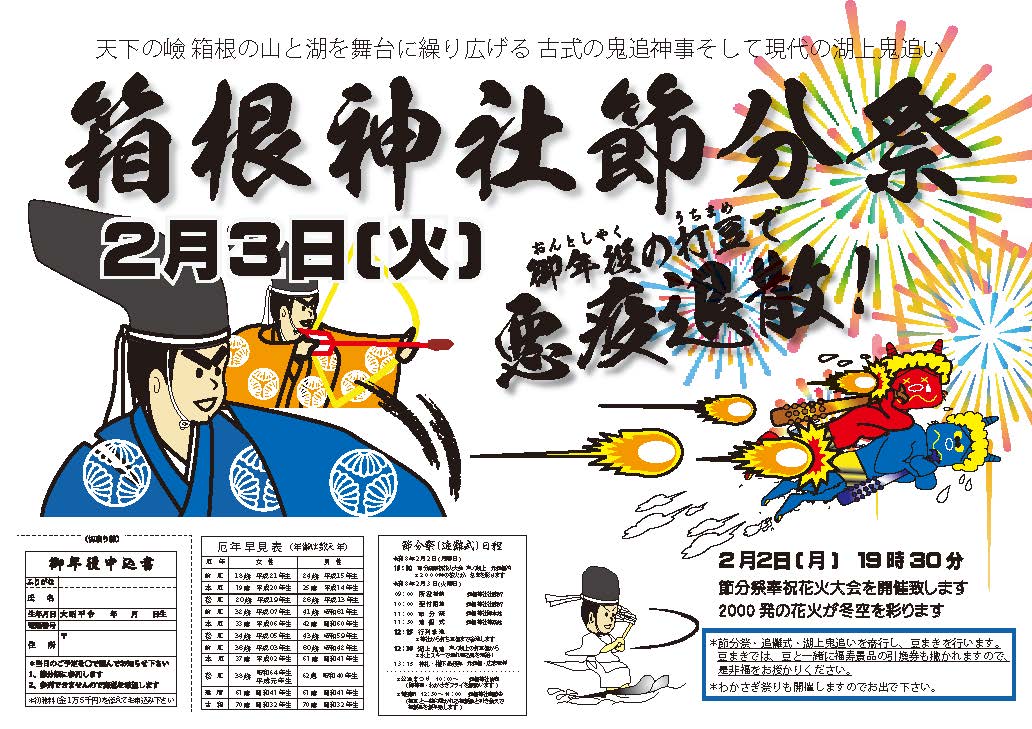 - 小田原からアクセス可能な箱根神社でも節分行事が開催。(例年2/2に花火を開催)