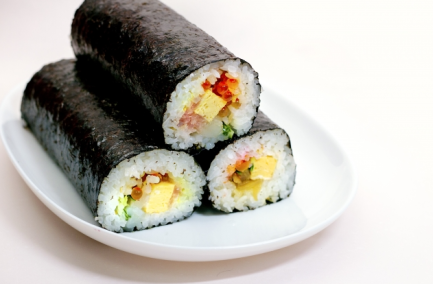 節分の日に欠かせない食べ物といえば、やっぱり恵方巻!その年の恵方を向いて、無言で丸かじりすると願いが叶うと言われています。